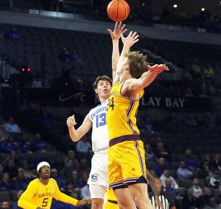 Creighton’s Mason Miller goes up for a shot during a game against Arizona State on Dec. 12, 2022 at the Jack Jones Hoopfest in Las Vegas. Miller is the oldest son of Mitchell native Mike Miller and the nephew of Bluejay assistant coach Ryan Miller. (Rodney Haas/605 Sports)