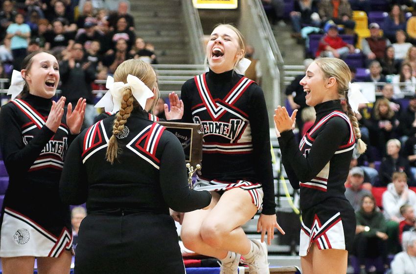 Sisseton celebrates winning the Class A Spirit of Six in Watertown. (Rodney Haas / 605 Sports)