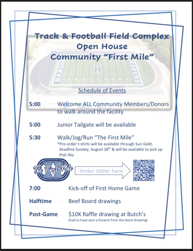 Hanson will host a track and football field complex open house prior to its home opener on Friday, Sept. 9.