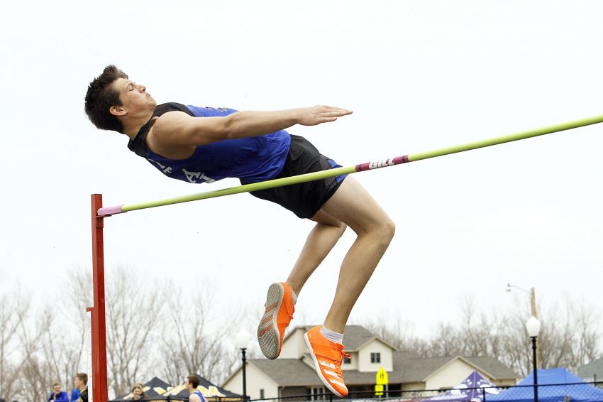 Mount Vernon/Plankinton's Reed Rus clears the bar in the high jump at Friday's Greenway Relays. (Rodney Haas / 605 Sports)