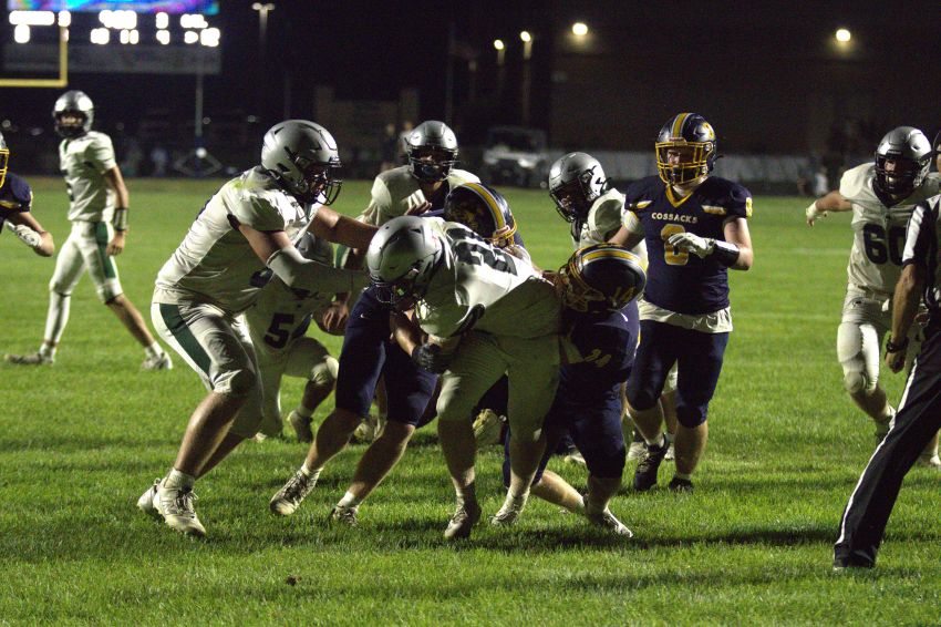 But the play of the game came on the ensuing Cossack drive less than a minute later. The Cyclone defense forced a turnover on downs on fourth and less than a yard to keep the Cossacks offense off the field late.