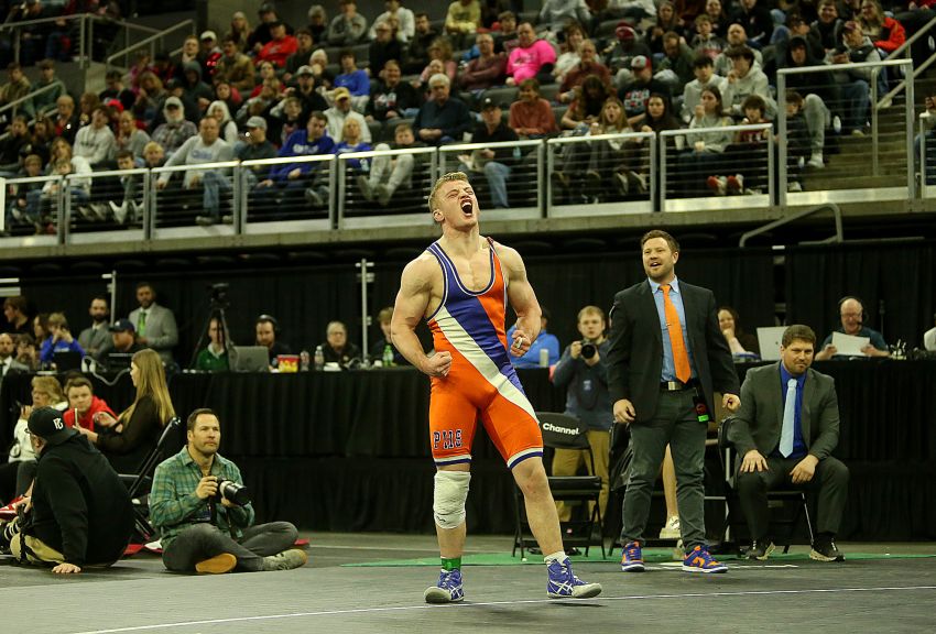 The Parkston senior secured the 175-pound Class B state championship in a 7-4 decision over Tri-Valley’s Landyn Reiser at the Denny Sanford PREMIER Center.